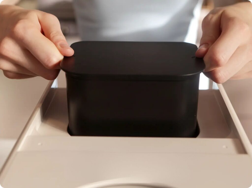 Može da primi do 2,5 L otpada od hrane odjednom, bez problema obrađujući ostatke obroka porodice od tri do četiri člana.